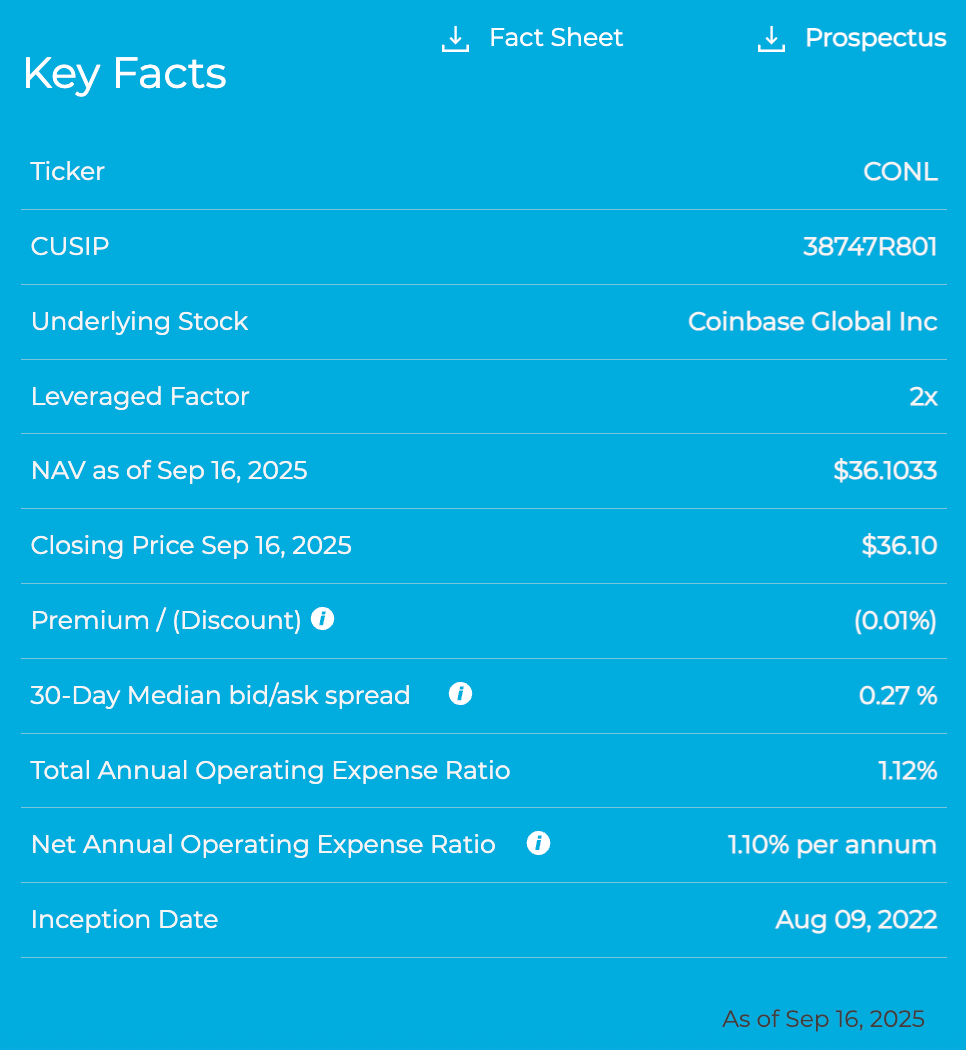 Pursue 2 times the daily percentage change of Coinbase with the GraniteShares 2x Long COIN Daily ETF (CONL).